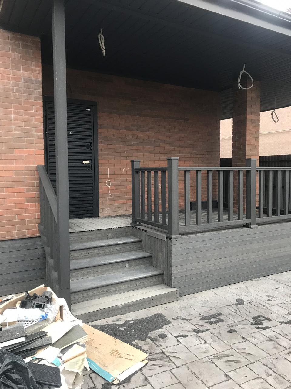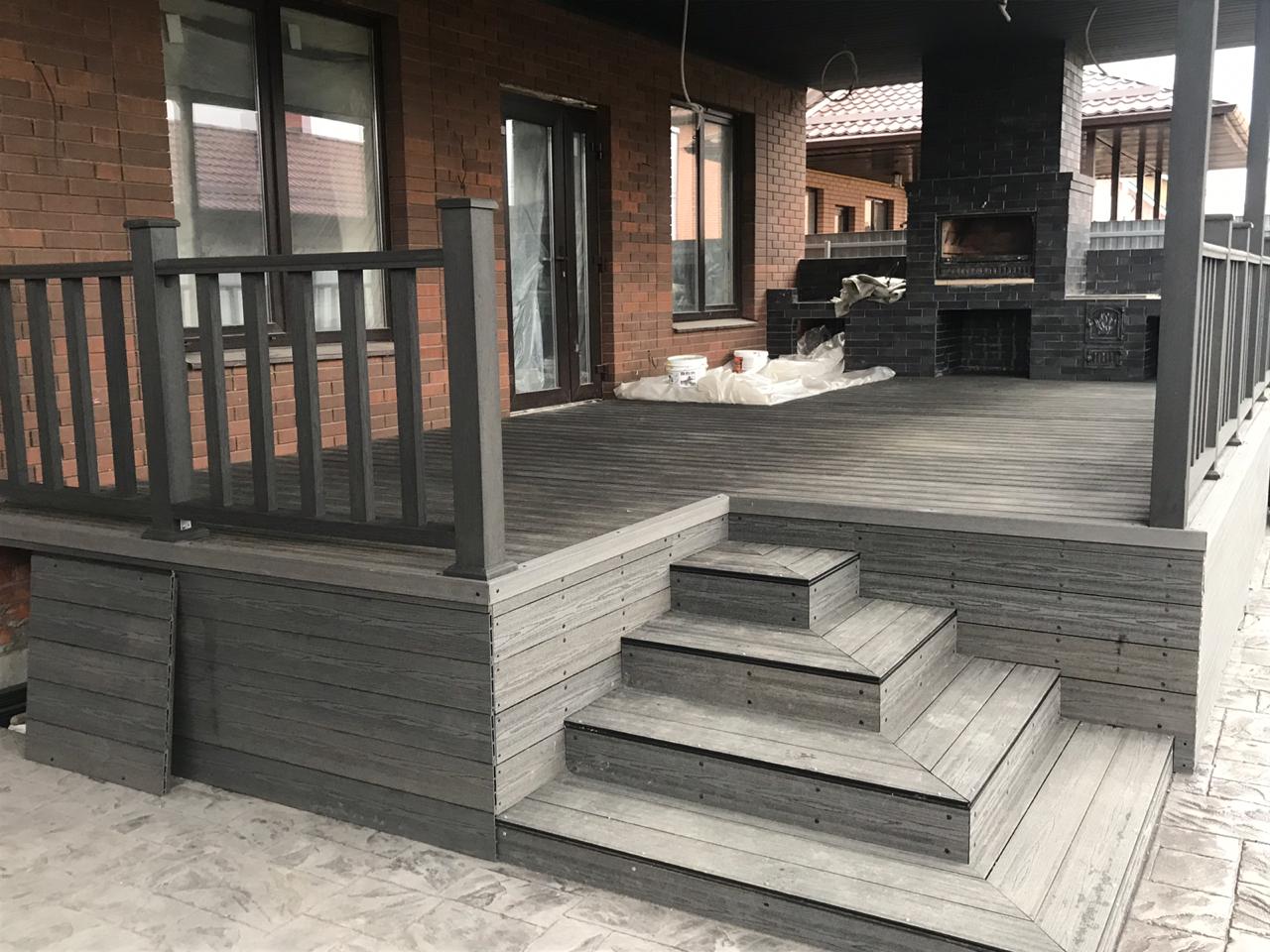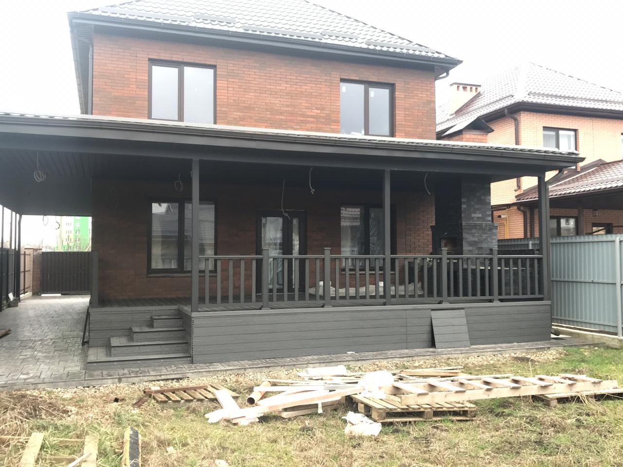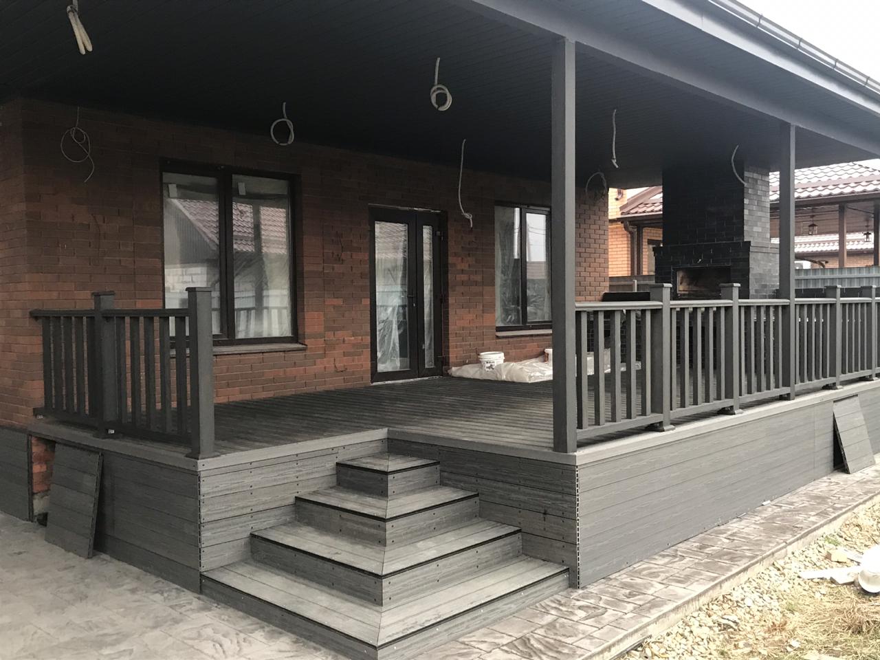 Краснодар, нижний Казачий Хутор, частное домовладение, две террасы, декинг кантри черный, ограждения А1 черный